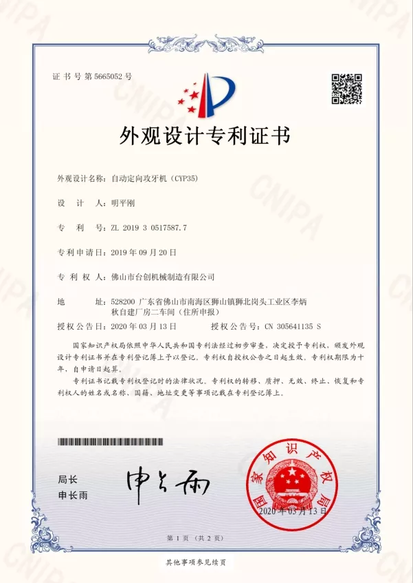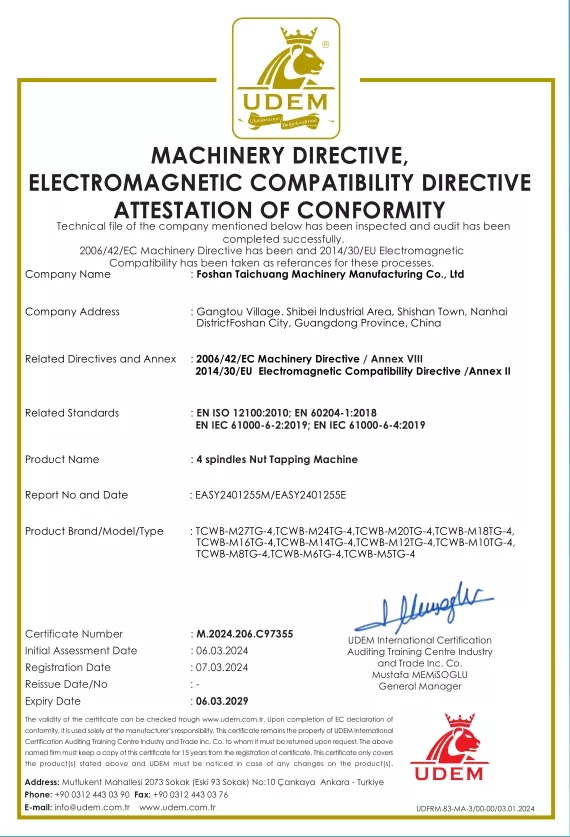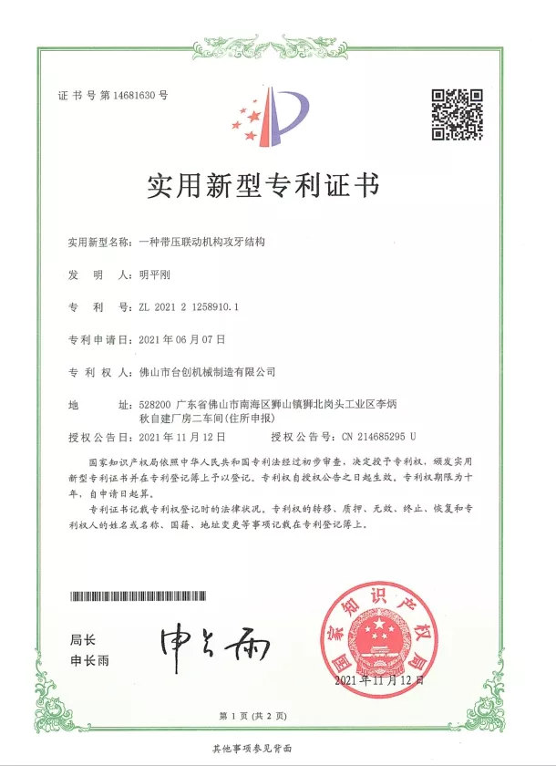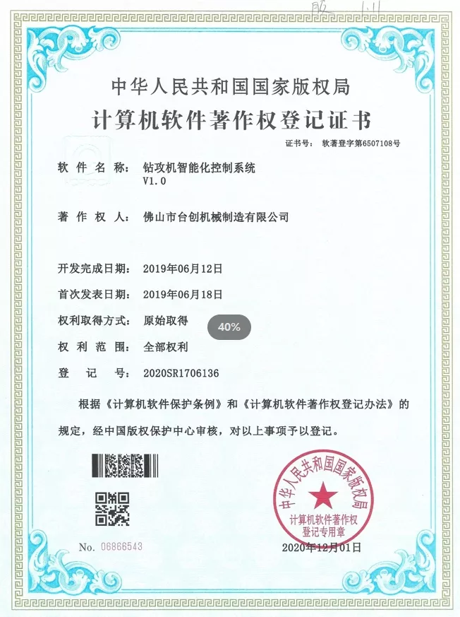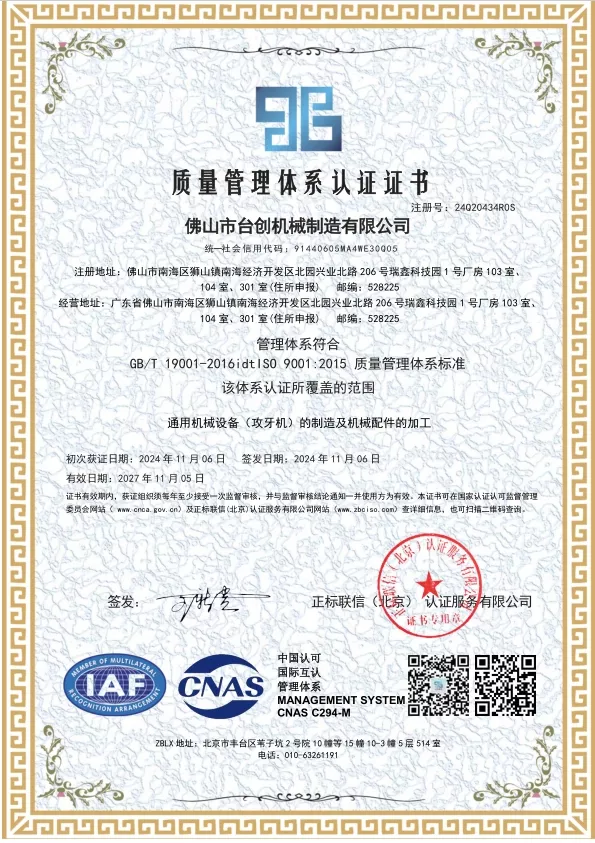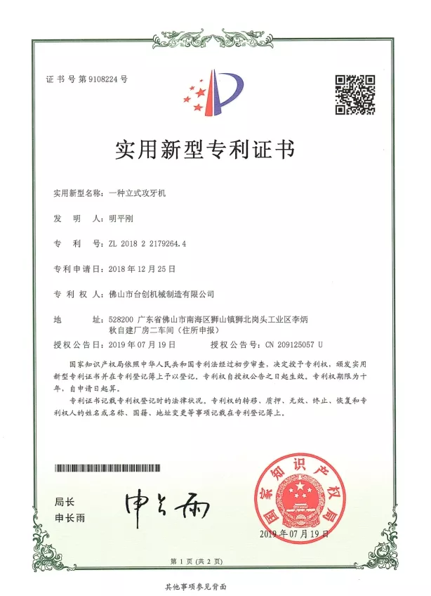 Brevets et innovation : nous détenons de nombreux brevets pour nos technologies de machines à tarauder les écrous, couvrant la conception mécanique, les systèmes d'automatisation et les solutions de sécurité. La recherche et le développement continus garantissent que nos machines offrent une précision, une stabilité et une efficacité élevées. L'innovation est appliquée aux systèmes CNC, aux servomoteurs, à la surveillance du couple et à la manutention automatique des matériaux pour répondre aux besoins changeants de la fabrication moderne.