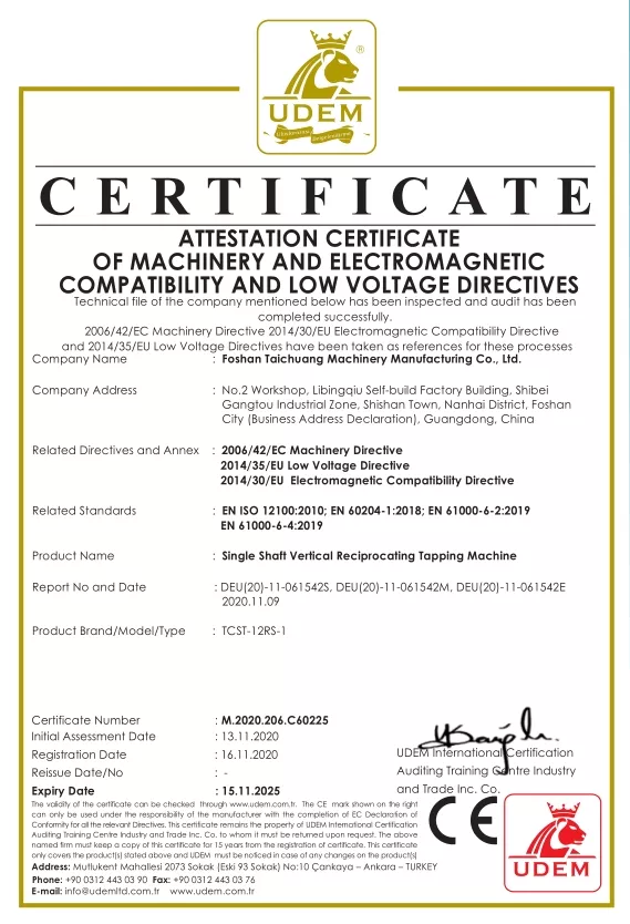 · Certification CE : garantit que nos machines répondent aux normes européennes de sécurité, de santé et de protection de l'environnement.