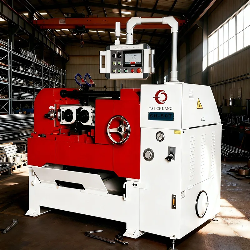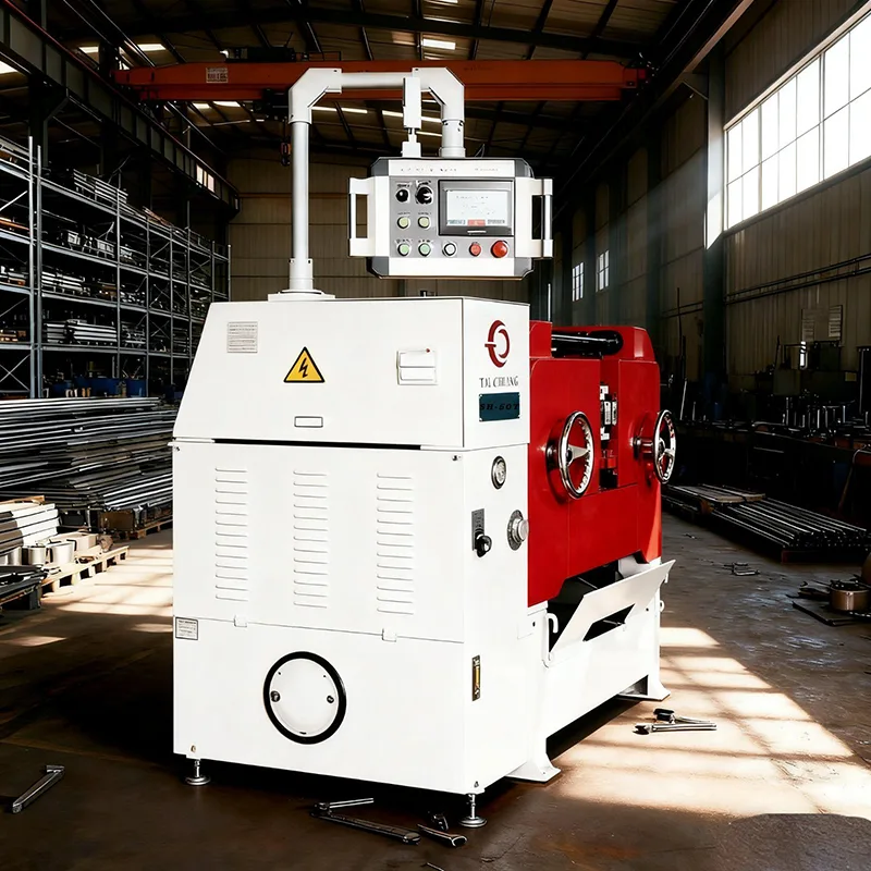 Machine à rouler les filets hydrauliques de haute précision pour barres rondes, présentée dans le portefeuille de solutions de laminage de filets personnalisées de haute qualité de TAICHUANG en provenance de Chine. Cette machine est conçue pour le formage de filetages externes stables et précis sur des barres rondes, en mettant l'accent sur un contrôle de précision, une longue durée de vie et des performances fiables pour prendre en charge la production industrielle de masse.